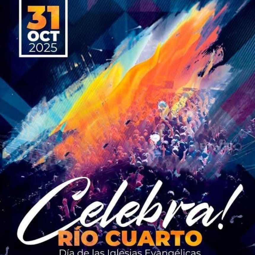 La comunidad evangélica de Rio Cuarto invita a un gran evento de celebración y unidad por el Día de las Iglesias Evangélicas. Bajo el lema "Celebra! Rio Cuarto", la cita será el viernes 31 de octubre, desde las 20 horas, en el Centro Cultural Viejo Mercado.