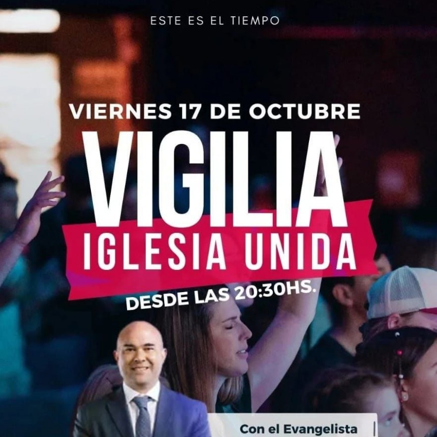 El Consejo Pastoral Evangélico de San Luis (COPESAL) invita a la comunidad a participar de la vigilia “Este es el Tiempo”, que se llevará a cabo el viernes 17 de octubre, desde las 20:30 hs., en la Iglesia Cristo Viviente, ubicada en calle Sarmiento esquina Padre Milanesio, Barrio Jardín San Luis.